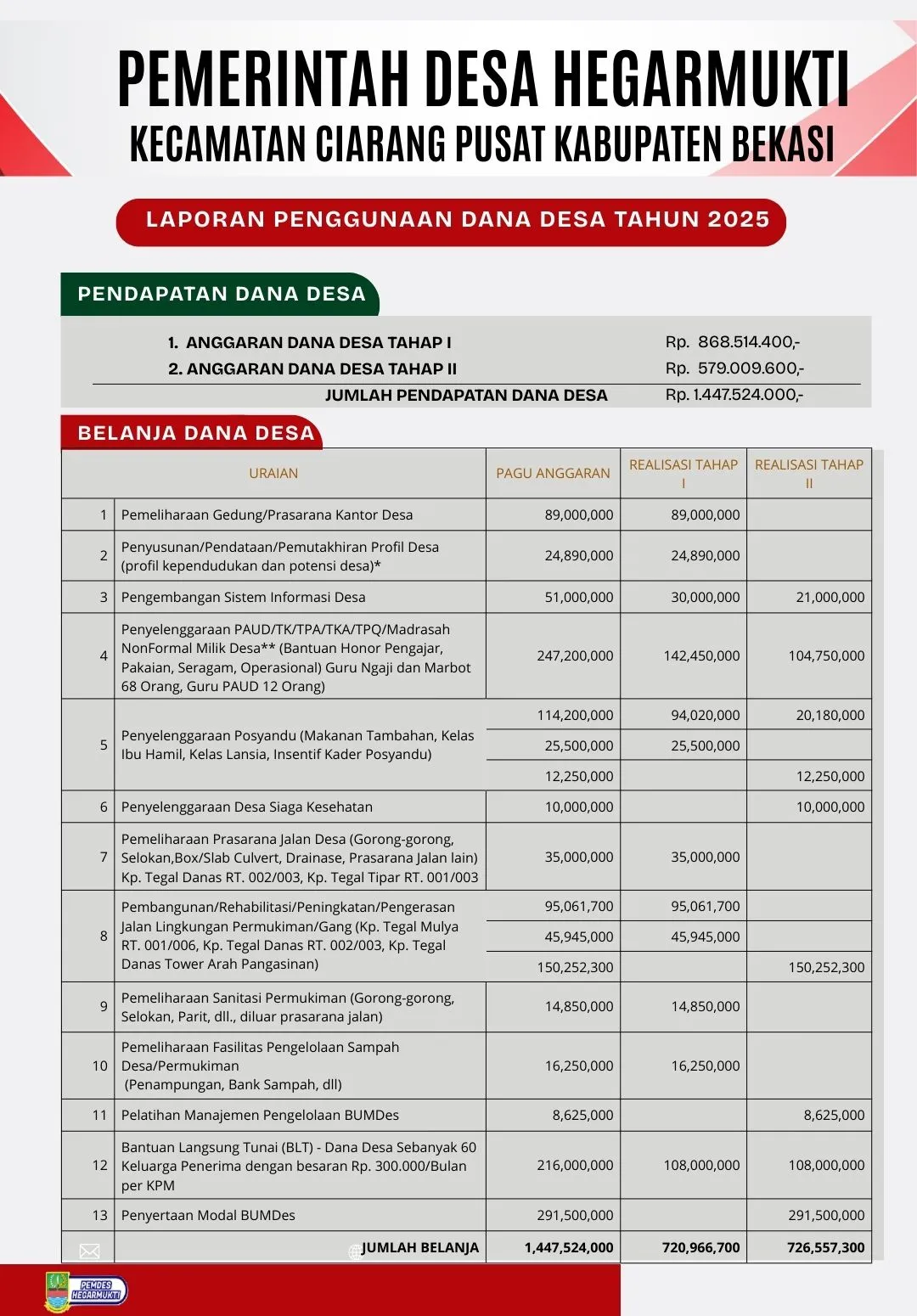 LAPORAN PENGGUNAAN DANA DESA TAHUN 2025 LAPORAN PENGGUNAAN DANA DESA HEGARMUKTI TAHUN 2025 Bagikan: Artikel Lainnya Load More