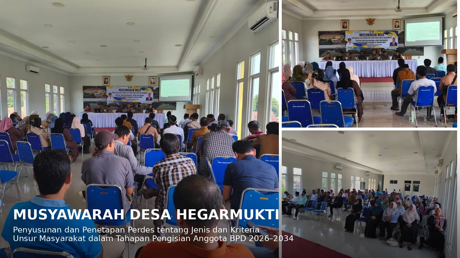 Kegiatan ini merupakan bagian dari upaya Pemerintah Desa Hegarmukti dalam mempersiapkan tahapan pengisian keanggotaan Badan Permusyawaratan Desa (BPD) untuk periode masa bakti 2026–2034, agar pelaksanaannya dapat berjalan secara tertib, transparan, partisipatif, demokratis, serta sesuai dengan ketentuan peraturan perundang-undangan yang berlaku.